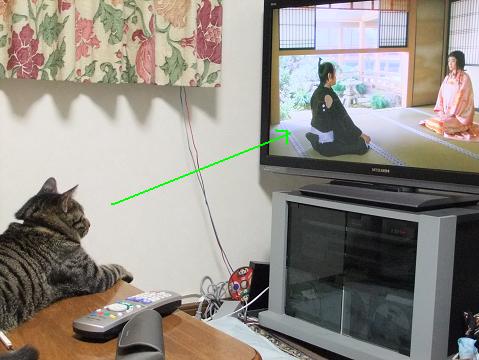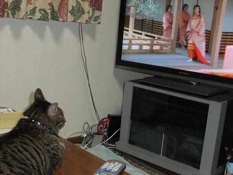 あと もぉ一人(1匹 ) テレビにくぎづけなのは・・・