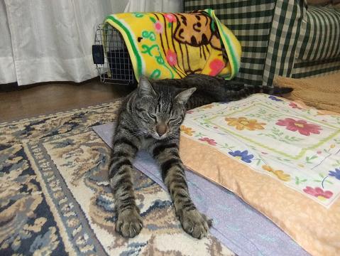 それも体に捻りも加えてますよね、猫は体がホント柔らかいですよね、ウチでは1番若いミャアミャアが柔らかい方かも!?