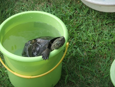 今週、出張のチチに代わって、、かめた、チビたの水換えも