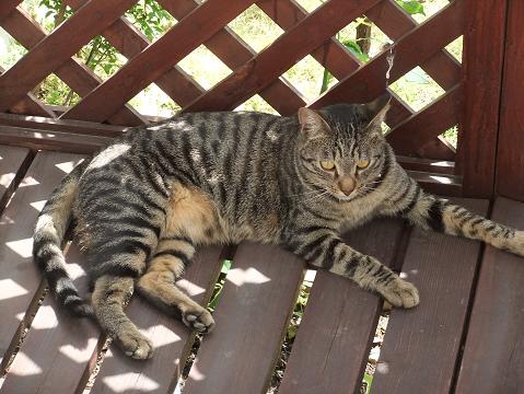 ウチのウッドデッキでくつろぐ コタロウ